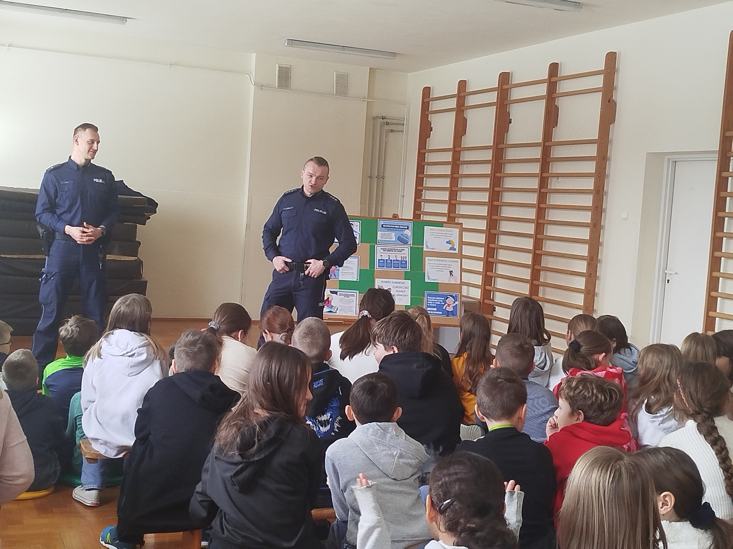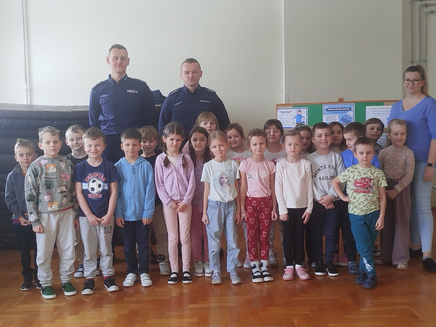 29 stycznia uczniowie klas 1–3 uczestniczyli w spotkaniu z panem dzielnicowym. Podczas prelekcji dzieci przypomniały sobie zasady bezpiecznej zabawy na śniegu i lodzie, unikania wchodzenia na zamarznięte zbiorniki wodne oraz właściwego zachowania w pobliżu ulic. Policjant zwrócił uwagę na konieczność noszenia elementów odblaskowych oraz przypomniał, jak ważne jest zachowanie ostrożności w kontaktach z osobami nieznajomymi. Uczniowie aktywnie uczestniczyli w spotkaniu, chętnie odpowiadali na pytania i dzielili się swoimi doświadczeniami.